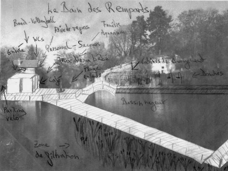 Je suis convaincue que le lac des remparts dans le parc du plan d’eau de Metz est l’endroit idéal pour réaliser une baignade urbaine naturelle, et ceci pour trois raisons : pour sa beauté naturelle et historique (avec les écluses charmantes de l’héritage industriel du canal), pour sa situation dans le cœur touristique de Metz et pour la possibilité d’y maîtriser la qualité de l’eau ainsi que le risque d’inondations. Si je ne me trompe pas, il suffira de planter des plantes pour le filtrage sur quelques dizaines de mètres dans le canal avant que l’eau n’arrive dans le lac.