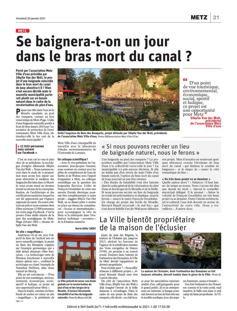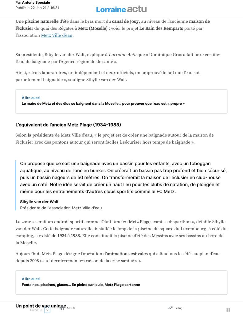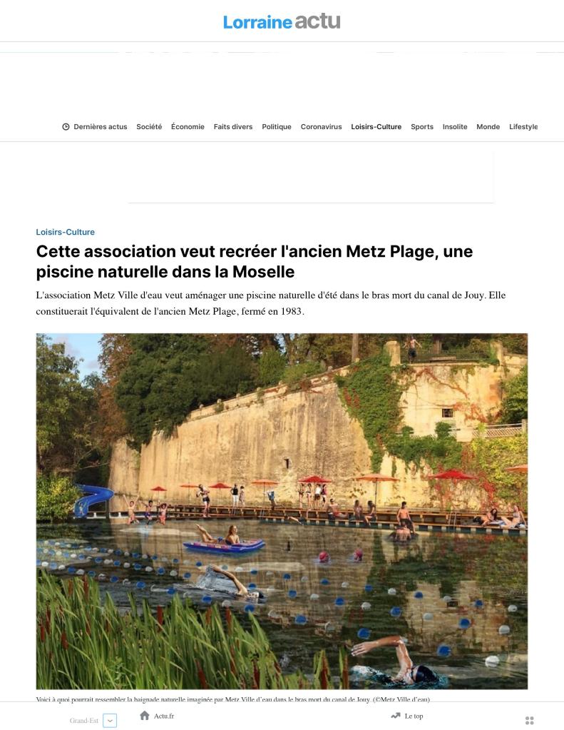 Actualité Actualité profil de baignade metzTélécharger Präsentation2023Herunterladen Qui sommes nous ? Nos missions L’équipe Les bénévoles Nos partenaires Nos projets Le Bain des Remparts La renaturation du Canal de Jouy Recherche Publications Nous rejoindre Devenir bénévole Faire un don Adhérer à l’association Mentions légales J’aime chargement…